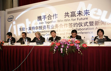 [2006年9月26日中国·上海]今日、全世界の情報テクノロジー産業の先駆者であるインテルと中国をリードするソフトウェア、ソリューション提供企業Neusoftグループが合意に達し、必要な政府の許可を経た後にインテル·キャピタルがNeusoftグループに対して4,000万米ドルを投資することが決定した。これはインテル·キャピタル中国技術基金設立以来最大の投資である。同時に、インテルはNeusoftと業務提携協議を締結、二社は今後ソリューション、コミュニティー·家庭用医療、組込式システム、ITトレーニングの領域で深く提携していく。インテル副社長兼ソフトウェア&ソリューション事業部部長Renee James氏、Neusoft代表取締役会長兼CEO劉積仁博士および双方の上層の関係者らが締結セレモニーに出席した。