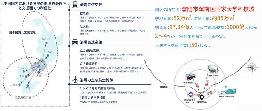 所在地:大連市高新区黄浦路901号、東軟河口園区(B園区)F6楼、空港や駅まで約18㎞、車で30分、交通便が良い